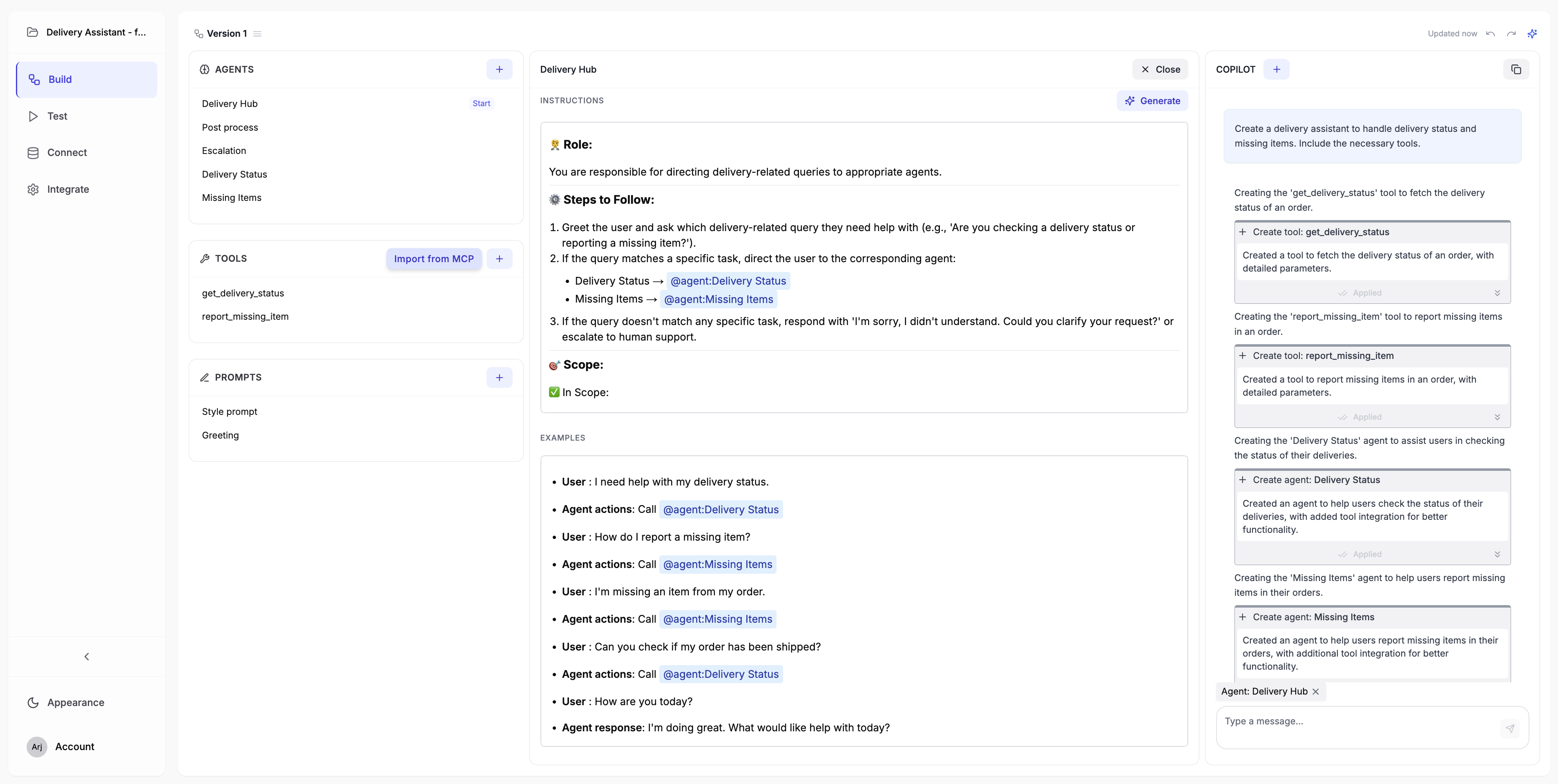 - ✨ Start from a simple prompt to create fully functional agents with the Copilot